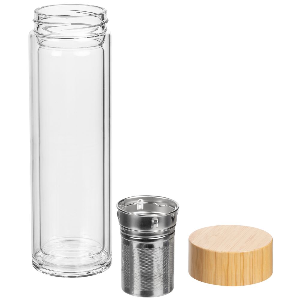 - Материал: бутылка - боросиликатное стекло, нержавеющая сталь, бамбук, неопрен; коробка - картон, пластик