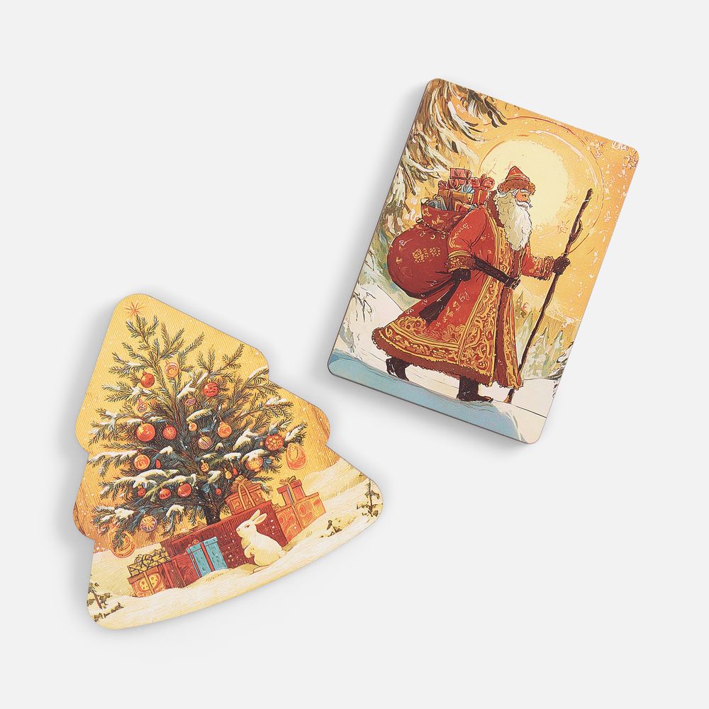 Упаковка в форме елочки сама по себе является украшением, а фигурные детали пазла — конфеты, снежинки и елочки — складываются в гармоничную атмосферную композицию. Магнитная крышка на упаковке обеспечивает надежное хранение всех элементов.