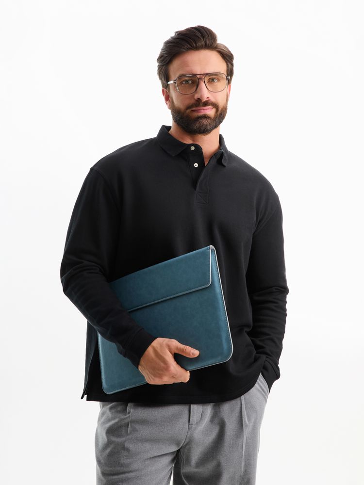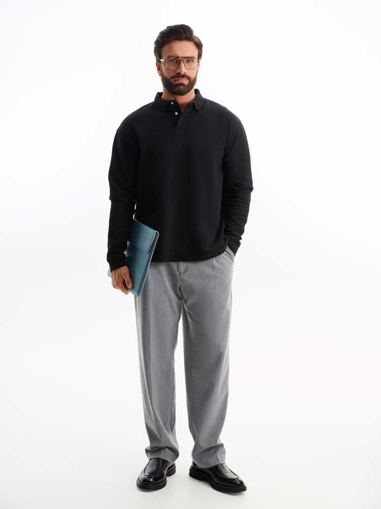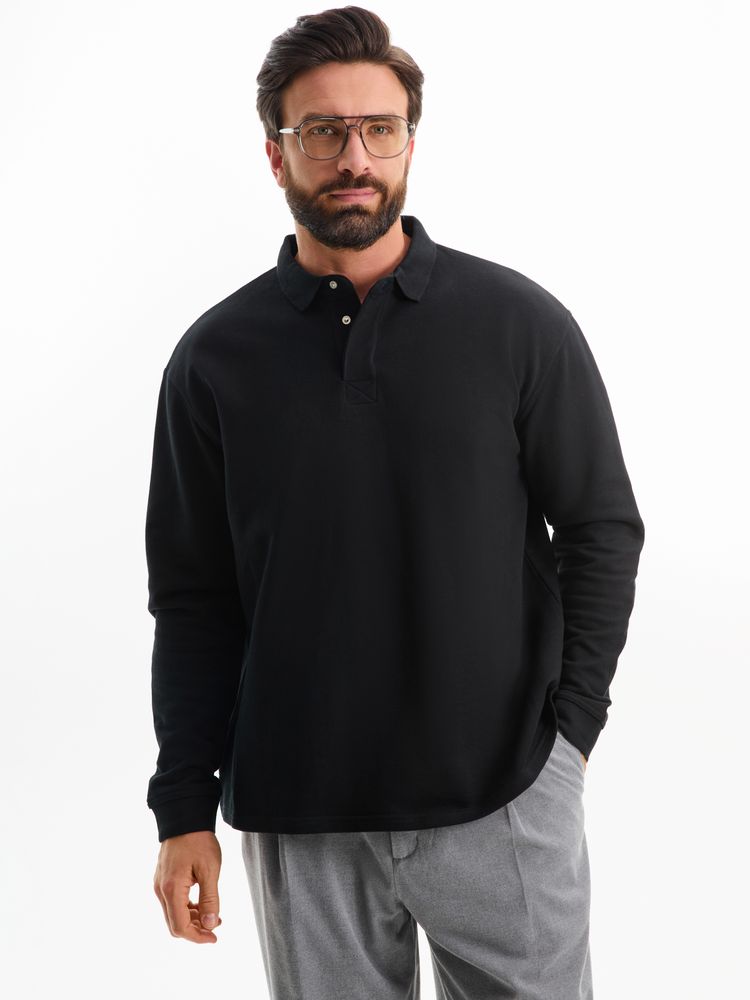 Рубашка поло оверсайз с длинным рукавом Heritage, черная, размер XL