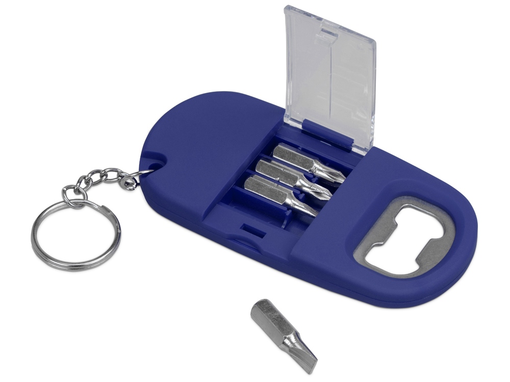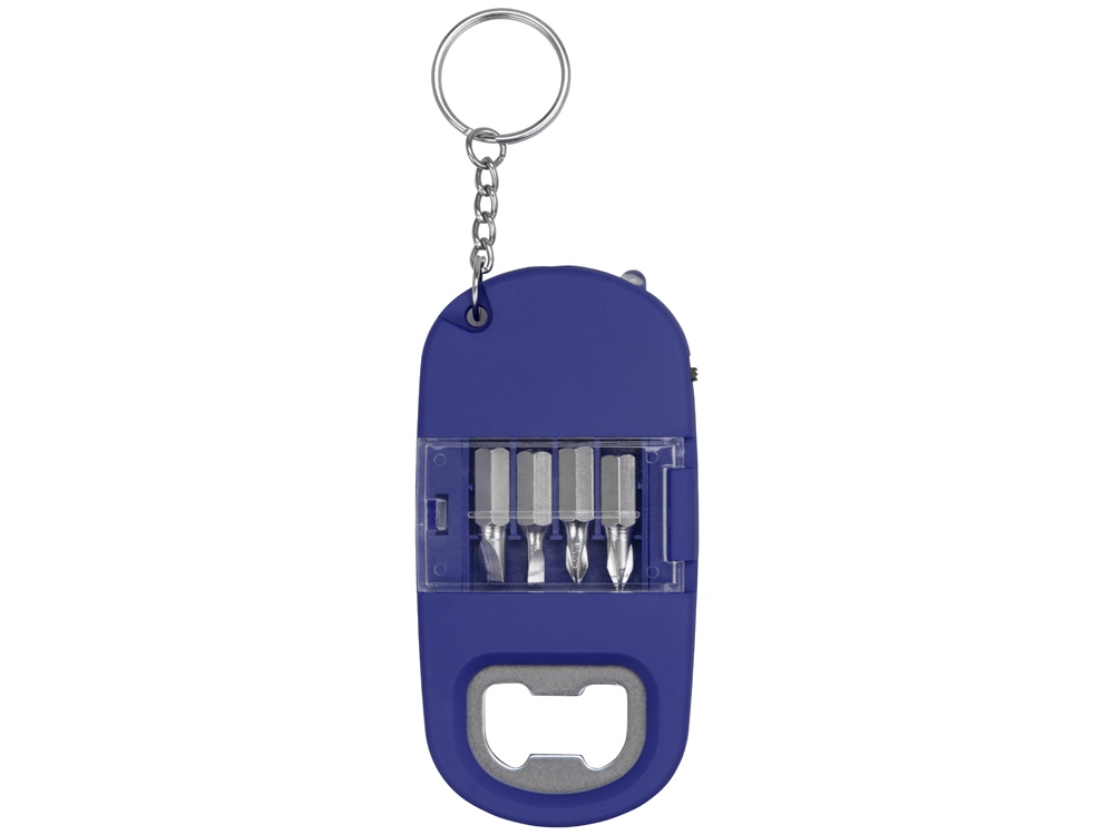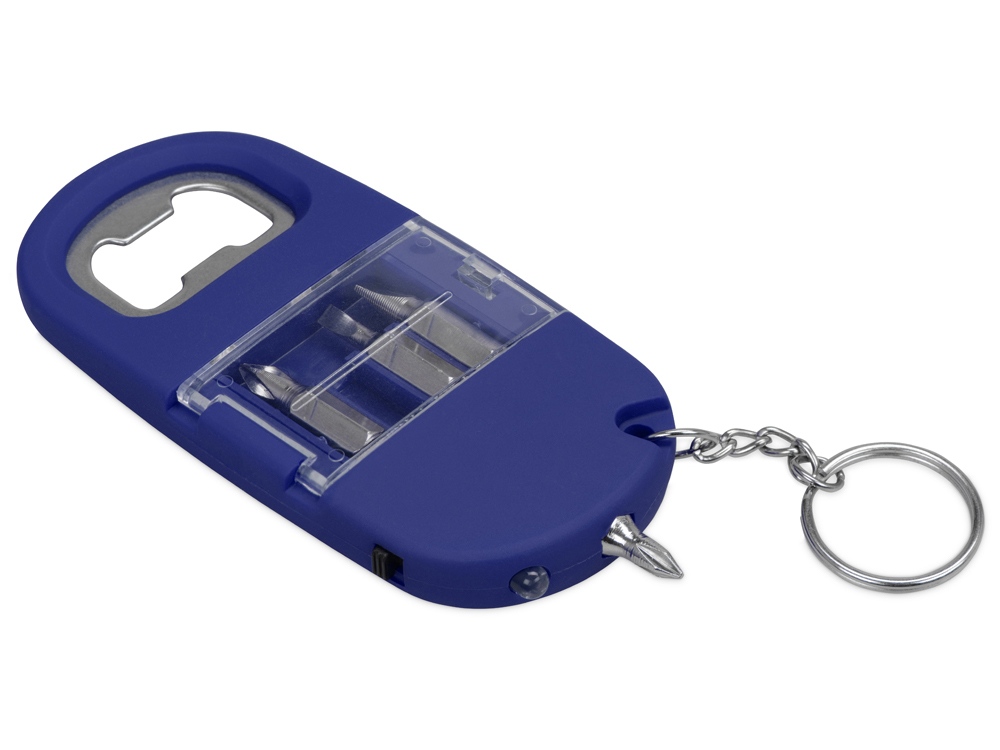 Брелок-открывалка с отвертками и фонариком Uni, софт-тач, синий
