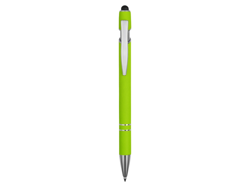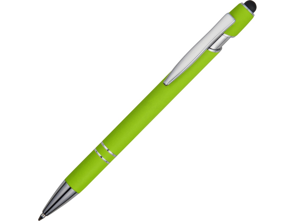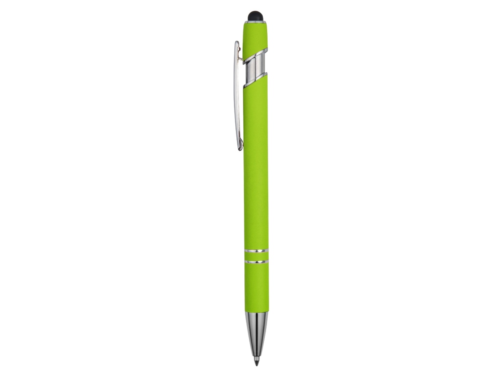 Ручка металлическая soft-touch шариковая со стилусом Sway, зеленое яблоко/серебристый (P)