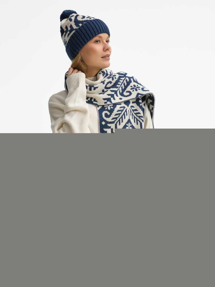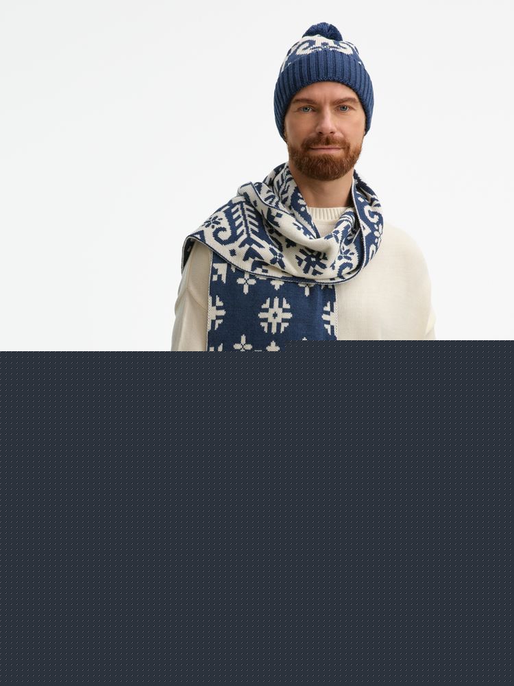 Шарф Wintertude выполнен из качественной полушерстяной пряжи в двух гармоничных цветах, которые подчеркивают сложный жаккардовый рисунок. Двухслойная структура обеспечивает дополнительное тепло и объем, сохраняя при этом легкость и мягкость.